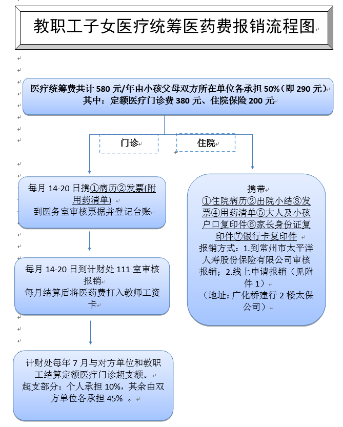 教职工子女医疗统筹费及医药费报销流程图